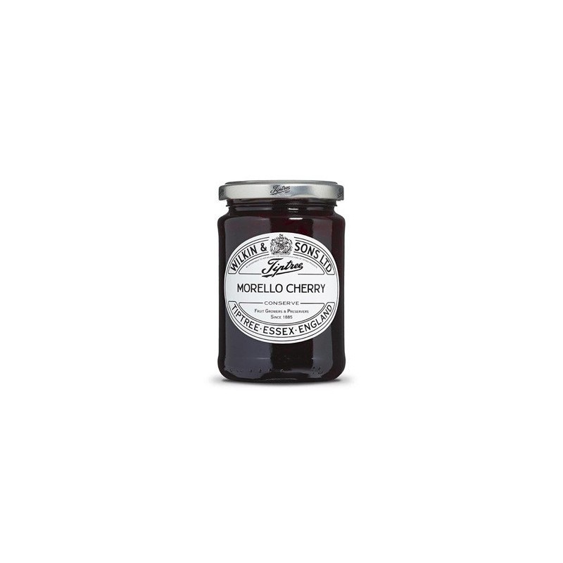 Le ciliegie rosa intenso coltivate nella fattoria Tiptree sono confezionate in ogni barattolo di Morello Cherry Conserve che le conferisce un sapore aromatico e ricco di noci.