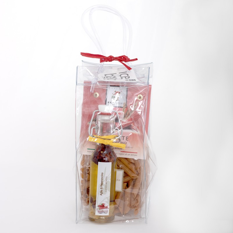 LA CONFEZIONE CONTIENE : PASTA PENNE AL PEPERONCINO, OLIO AGLIO E PEPERONCINO