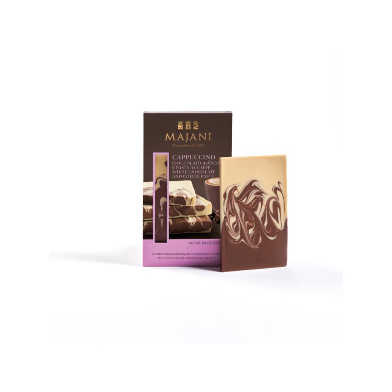 Cioccolato bianco (50%) e pasta alle nocciole con caffè.